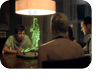 There were two main effects - one of them consisted of a deep chasm built as a real set and then extended digitally, the second one was a holographic warrior that appeared hovering over the board to ask questions and assign tasks to the players.