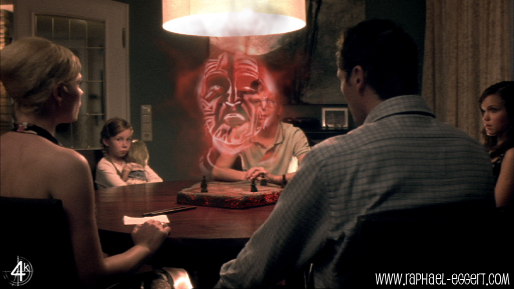 Manatu was a TV feature film for the German broadcaster SAT1 and relied heavily on VisualEffects to tell the story of a family trapped in their own house, bound to play and win a board game to be released again.